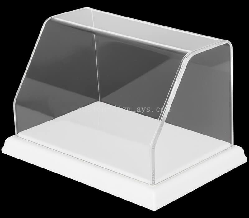 Espositore frontale inclinato in acrilico trasparente personalizzato con base bianca